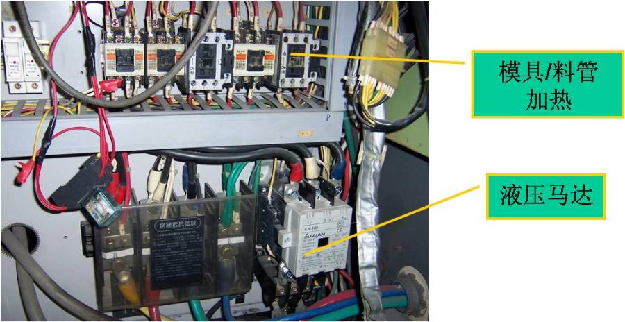 2.    接觸器的應(yīng)用,主要是用于料管加熱及液壓馬達控制兩種。