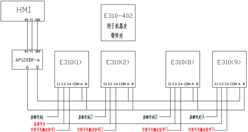 系統(tǒng)組成:臺安AH系列觸摸屏+AP100系列PLC+E310系列變頻器(11.5kw,92.2kw)